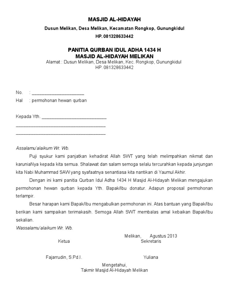 Contoh Surat Permohonan Bantuan Hewan Qurban - Surat Permohonan Qurban Pdf : contoh surat permohonan hewan qurban dipublikasi.