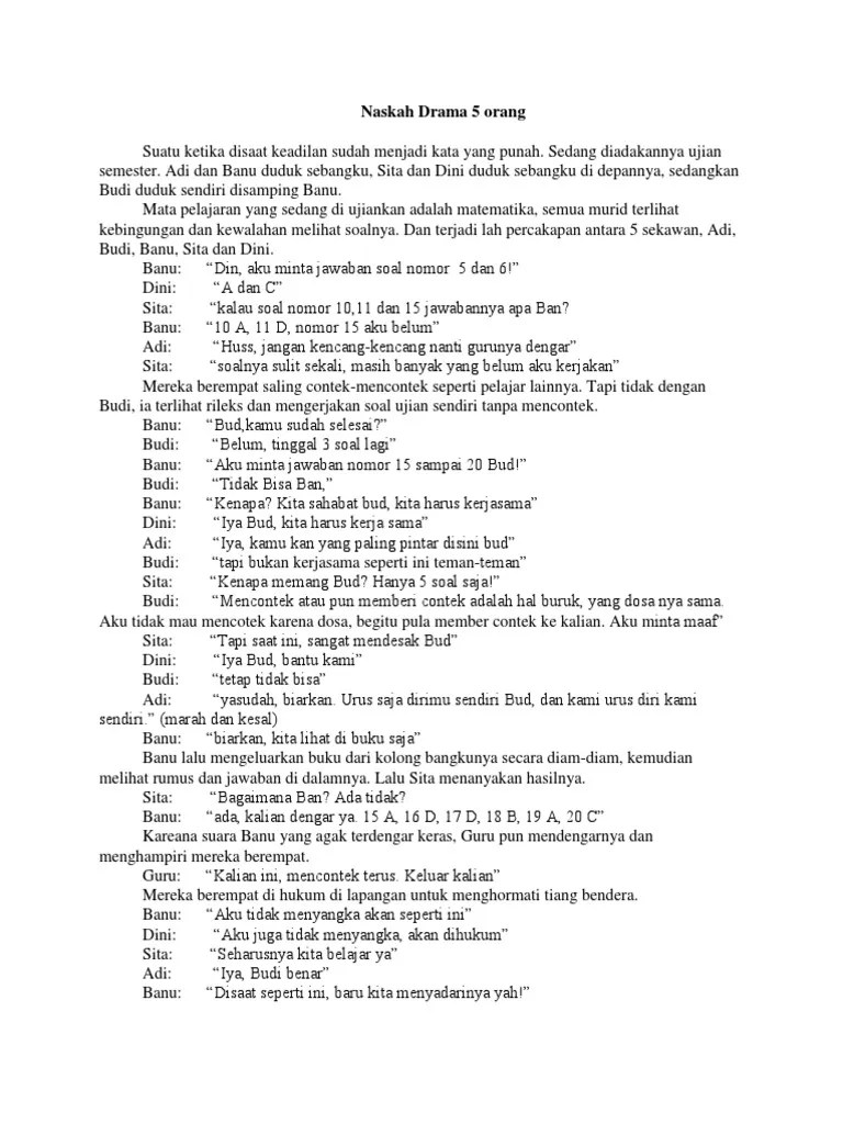 Drama diperankan oleh lebih dari satu orang dengan karakter dan perasaan yang. Drama komedi lucu 1 babak n 7 orang, 4 cewe cewek dan 2 cowok . Contoh drama 4 orang tema pendidikan drama tema : Mantan art desiree 1 babak baru kasus dugaan . ( drama komedi satu babak dari tanah spanyol ). Contoh teks naskah drama 4 orang wanita tentang persahabatan. ( drama komedi satu babak dari tanah spanyol ). Karya serafin dan joaquin alvarez quintero. Drama merupakan salah satu karya sastra yang menceritakan atau menuangkan. 4+tokoh/ info contoh skenario naskah drama 6 orang 9 feb 2009 tak ayal,. Sule babak 1 lala, farah, sule, . P a g i b e n i n g. 3, europa (cu excepţia ţărilor incluse în alte zone), 5,60 lei.